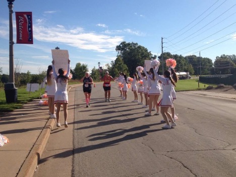 I see so many parents, students and staff volunteering along the course and it is such a huge pick-me-up when I see friends and neighbors out there too. Even those I don’t know personally, seeing that Kaukauna orange and black boosts my morale. I will often wear my Kaukauna logoed gear and colors when I run. Seeing the students do a double-take and realize someone from their school is out on the course is so much fun. Their faces lighting up motivates me to keep going.